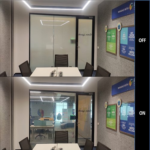 Powered by advanced PDLC technology, it is durable, energy-efficient, and easy to maintain. Our Switchable PDLC Film improves comfort, privacy, and style while giving your interiors a smart and premium finish.